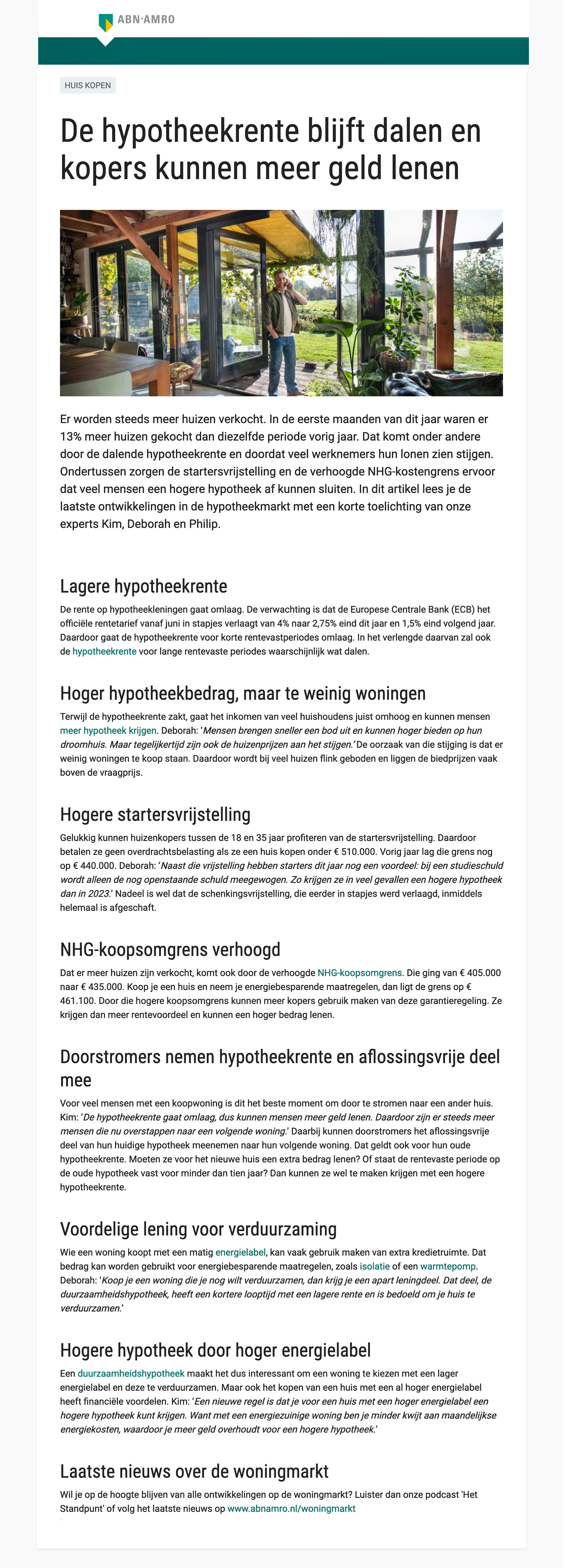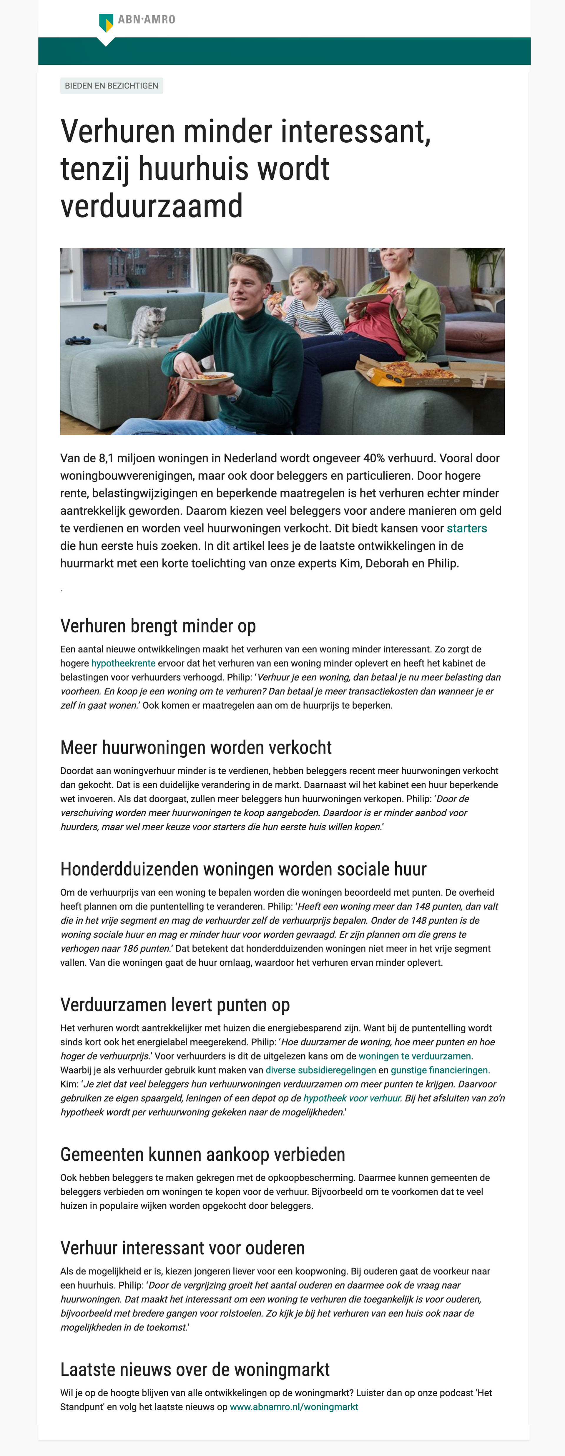 Artikelen over de huizenmarkt voor ABN AMRO